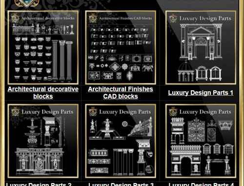 Architectural decorative blocks, Architectural Finishes CAD blocks, Luxury Design Parts 1~6,Luxury Door & Window,Luxury Stair Design,Ornamental Parts of Buildings 1~8,Luxury Interior Design,119 Types Paving Design,Luxury Ground Design,Classical Decoration Elements1~25,Castle Design,Autocad Blocks Set,All Interior Design Blocks 1~8, All Tree and Plants Blocks, All Transportations Vehicles Lorries, All Furniture Blocks, All Tables Blocks, All Bed Blocks, All OfficeTable Blocks, All Sofa Blocks, All Chair Blocks, All Decoration Blocks, All Kitchen Blocks, All Bathroom Blocks, All Windows curtain Blocks, All Landscape blocks, All People Blocks, Blocks and elevation, Furniture design elevation, Luxury Sofa Blocks and elevation