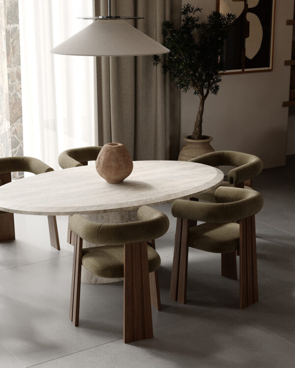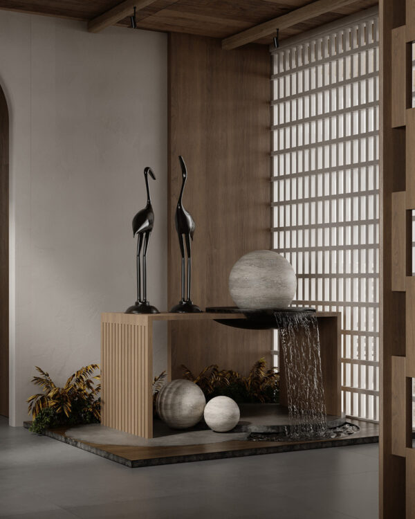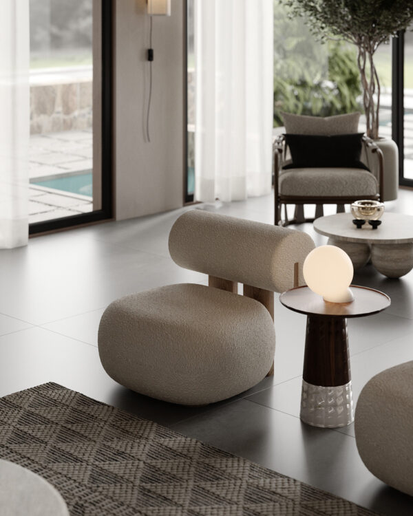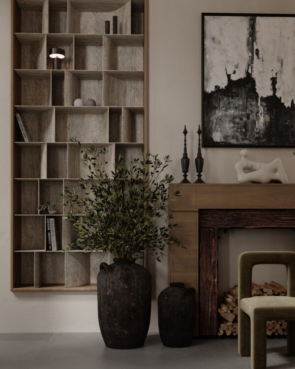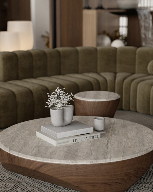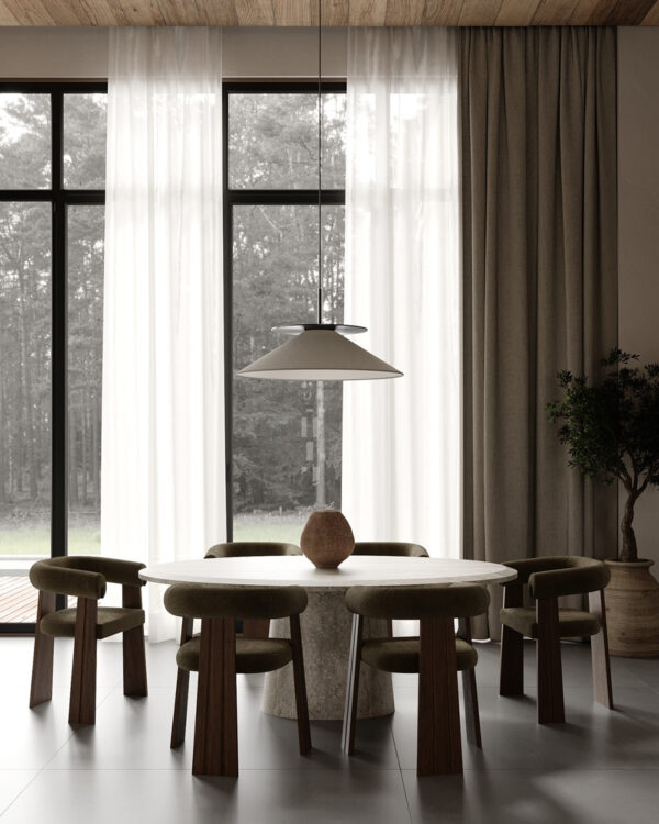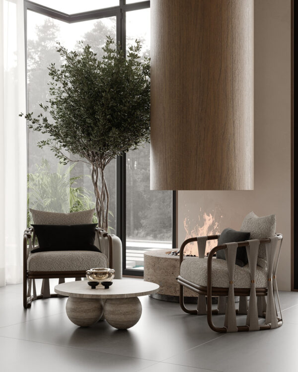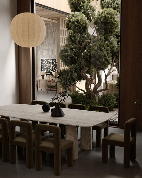 Embracing the essence of Earthy Modernism, this home visualized by Esraa Elemam is a testament to the new rustic aesthetic sweeping through contemporary design. With its rich, wooden textures that dance across ceilings and floors, and the stone accents that provide an anchor of natural serenity, each room whispers a story of modern sophistication entwined with the raw beauty of the outdoors. Here, clean lines and minimalist furnishings are thoughtfully juxtaposed against the backdrop of nature’s own artistry. As you step into this space, you are enveloped by an atmosphere that is both grounding and uplifting — a true sanctuary for the soul that exemplifies the harmonious blend of rustic charm and modern elegance.