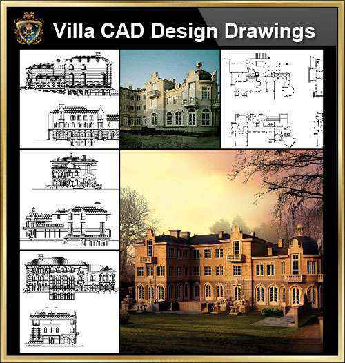 ★【Villa CAD Design,Details Project V.8-French Fontainebleau Style】Chateau,Manor,Mansion,Villa@Autocad Blocks,Drawings,CAD Details,Elevation