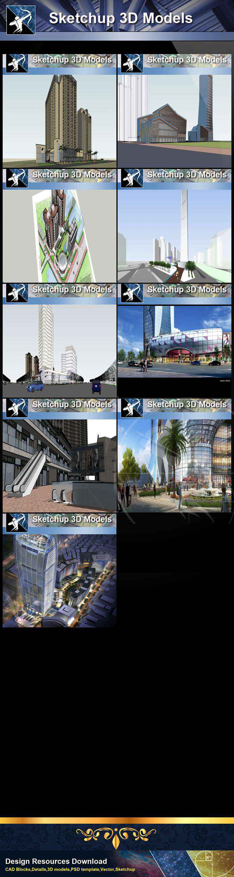 ★Best 23 Types of Commercial Building Sketchup 3D Models Collection