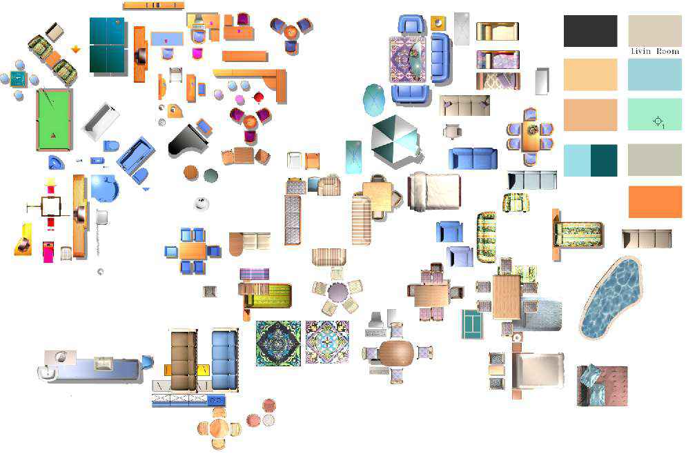Photoshop “PSD” blocks can be used in architectural plans rendering, interior design and landscape design.