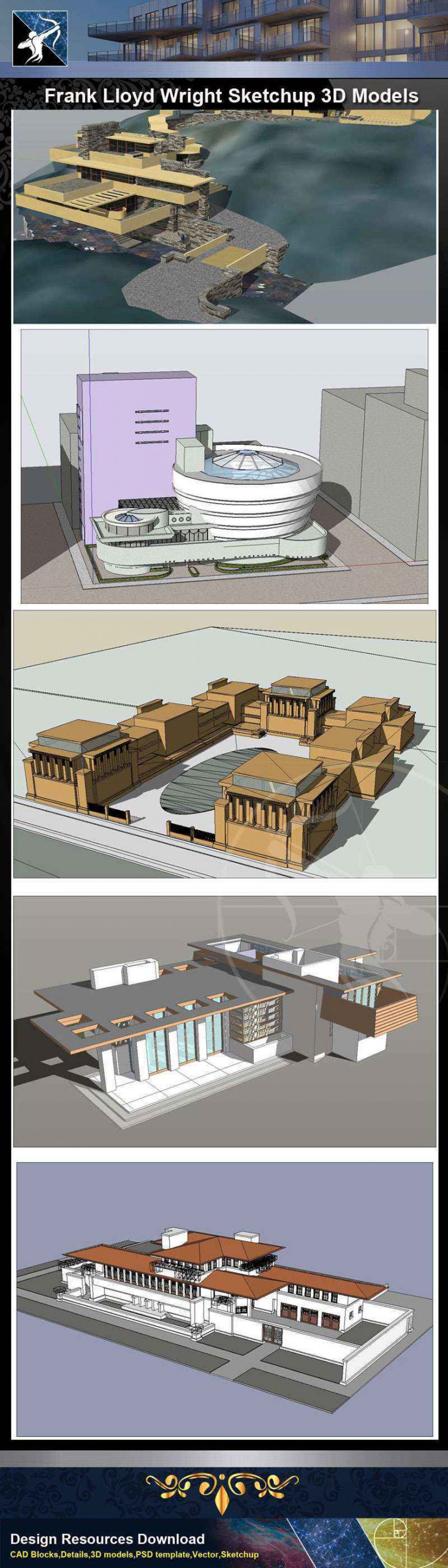 ★Famous Architecture -16 Kinds of Frank Lloyd Wright Sketchup 3D Models