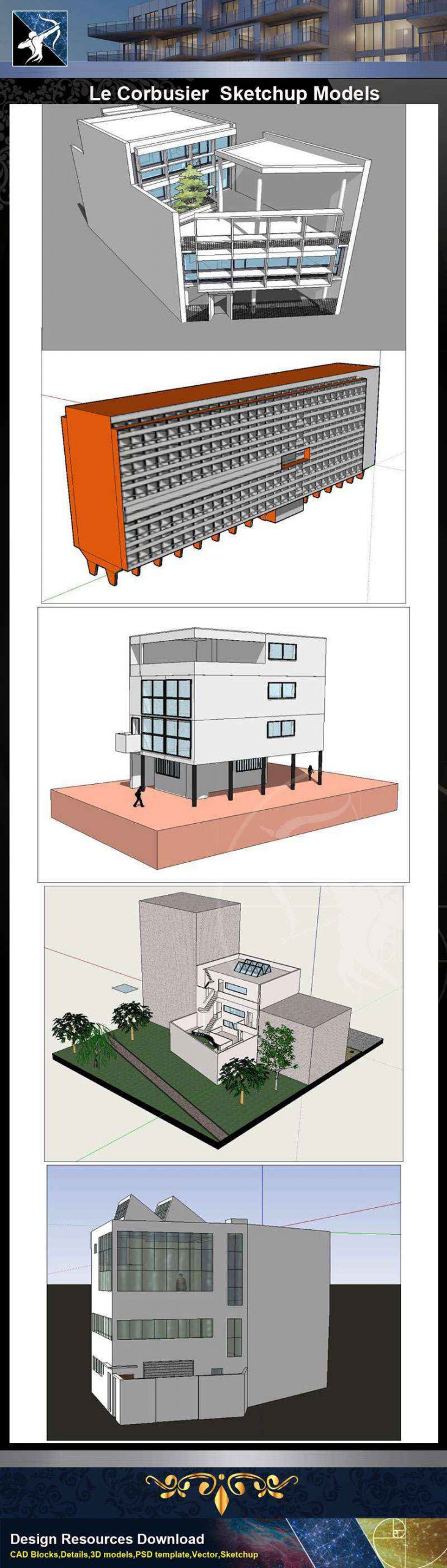 ★Famous Architecture -24 Kinds of Le Corbusier Sketchup 3D Models