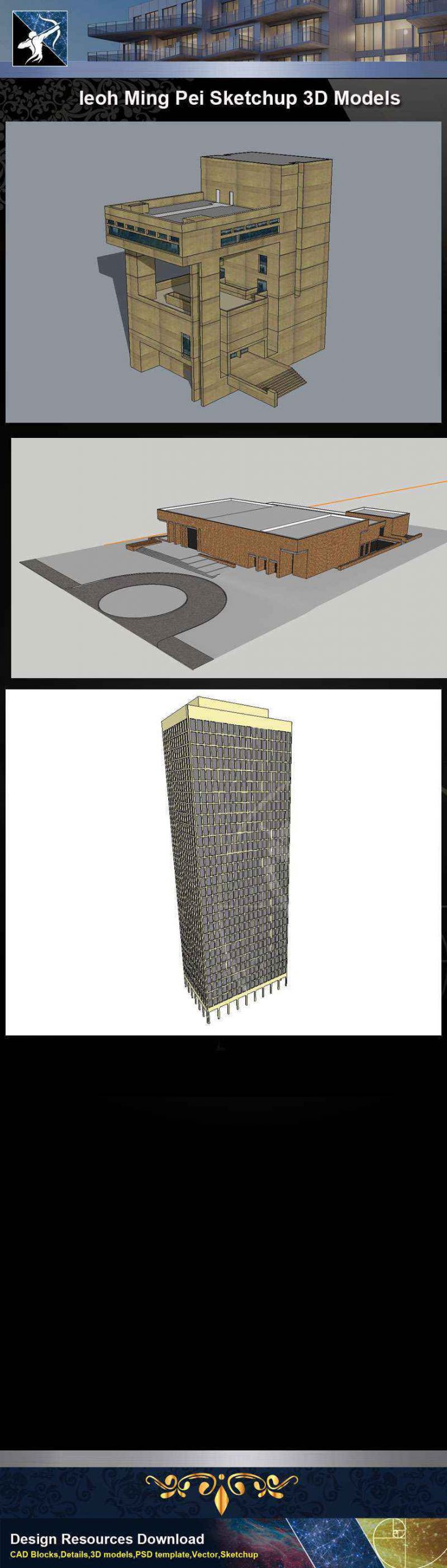 ★Famous Architecture -Ieoh Ming Pei Sketchup 3D Models